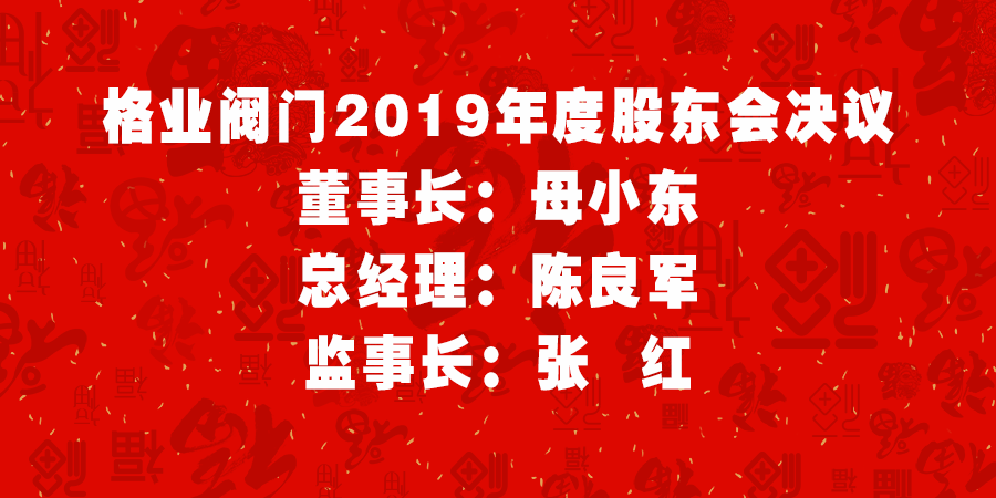 2019年12月28日,經格業閥門股東會決議,為了確保公司運營的穩定性,決定廢除董事長輪流制度,改為董事長選舉任期制,董事長由股東選舉產生,每一任期三年,總經理、監事長職務與董事長同步推選,任期同為三年。